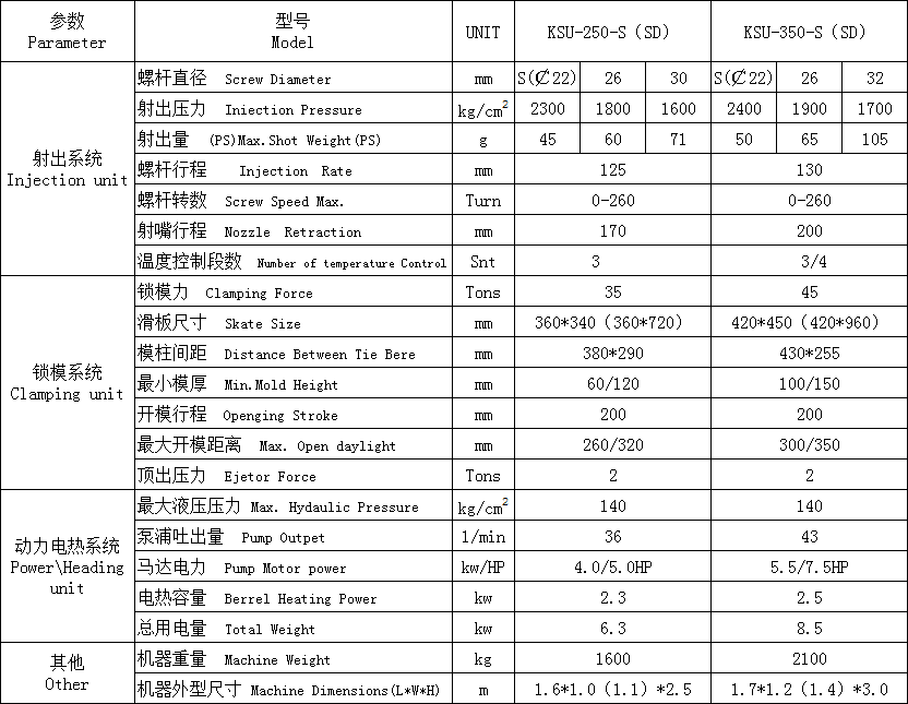 連接器專用單滑板注塑機(jī)KSU-350-S參數(shù):
