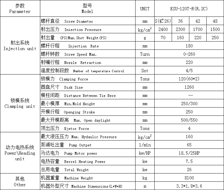 連接器圓盤注塑機(jī)KSU-120T-R參數(shù):