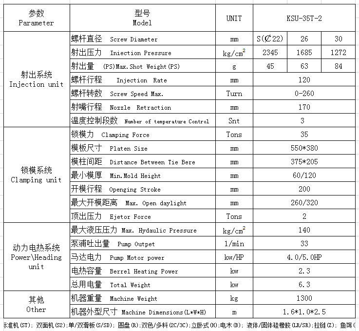 電線插頭立式注塑機(jī)KSU-35T-2參數(shù)配置