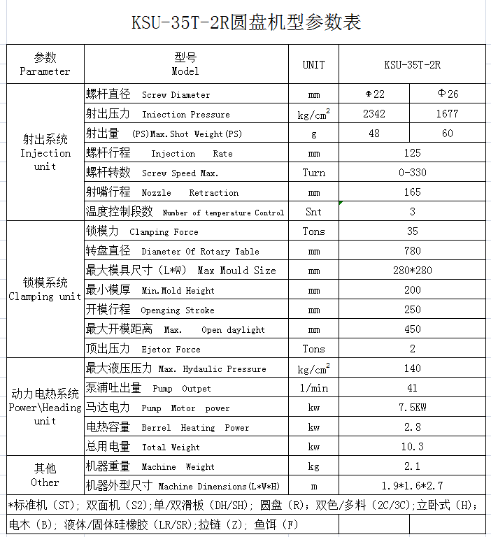 KSU-35T-2R圓盤立式注塑機性能介紹: